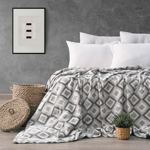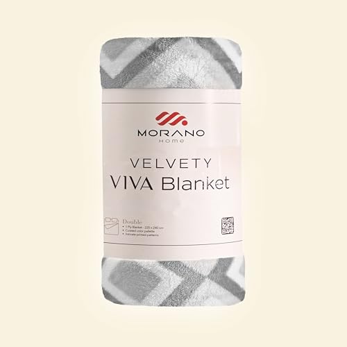 MORANO - Morano Viva Blanket – Printed Model, 220x240 CM, Lightweight Ultra-Soft Polyester Throw with Elegant Finish, Stylish Colors,Warm and Cozy Blanket for Bed or Sofa (Silver)