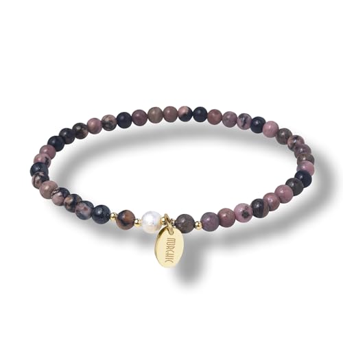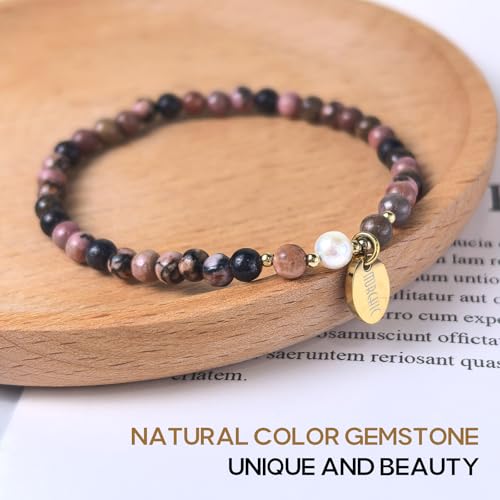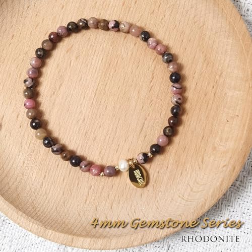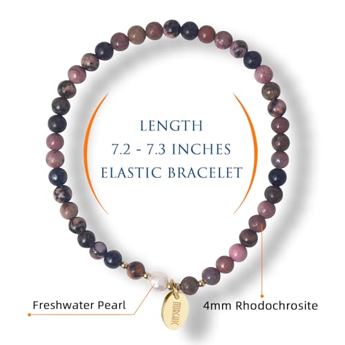 Morchic - Morchic 4mm Natural Gemstone Beads Stretch Bracelet for Women Girls, Freshwater Pearls Beads, Energy Gem Series Birthday Gift 7.2”, 7.2, Stainless Steel, rhodochrosite