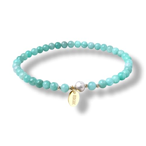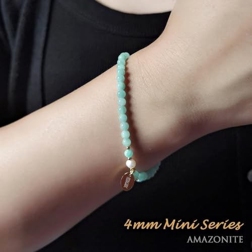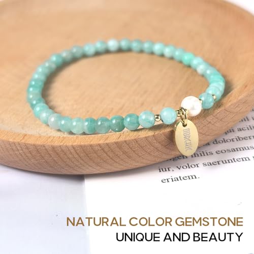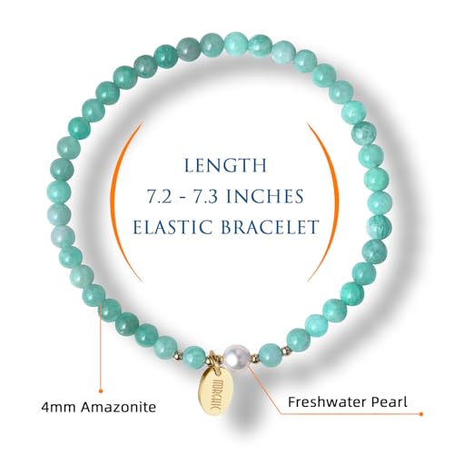 Morchic - Morchic 4mm Natural Green Amazonite Gemstone Beads Stretch Bracelet for Women, With Freshwater Pearls, Energy Gem Birthday Gift for Her 7.2”