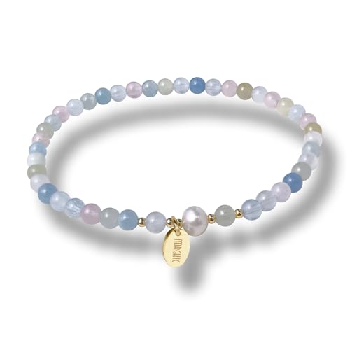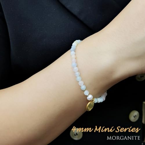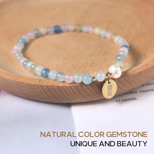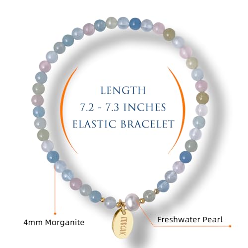 Morchic - Morchic 4mm Natural Morganite Gemstone Beads Stretch Bracelet for Women, With Freshwater Pearls, Energy Gem Birthday Gift for Her 7.2”