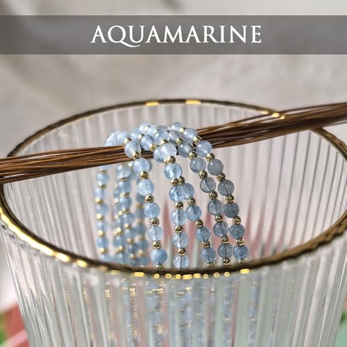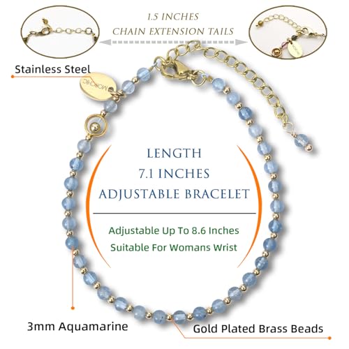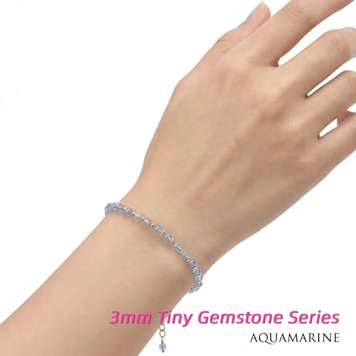Morchic - Morchic Blue Aquamarine Gemstone Adjustable Bracelet for Women, 3mm Mini Beads Energy Gem Charm Jewelry, Birthday Gift 7.1"