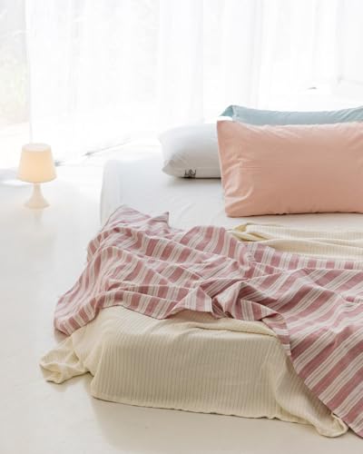 More Cottons - More Cottons Polyester Striped Throw 90x200cm Dark Rose