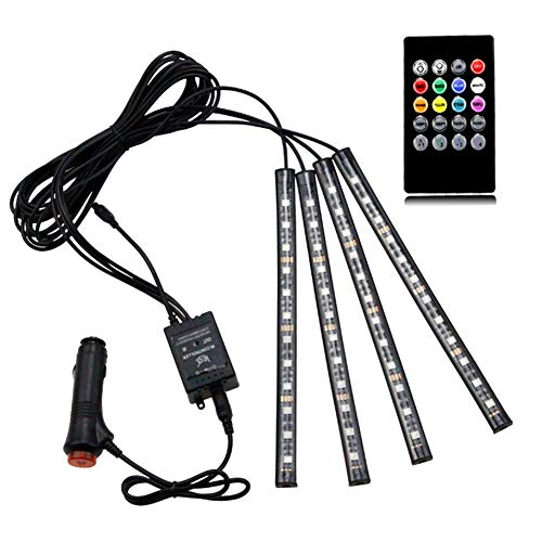 MoreChioce - MoreChioce 12V Car Interior LED Strip Lights, 4PCS LED Strip Light with Remote Control Sound Active Function LED Lighting Car Cigarette Lighter Car Interior Decoration Light