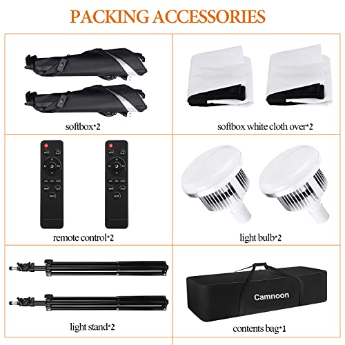 - Professional Studio Photography Light Kit: Including 2 * LED lights, 2 * softboxes, 2 * light stands, 2 * remote controls and 1 * carry, the photography light kit is perfect for home/studio video recording, live streaming, makeup, portrait and product photography, fashion photo taking, children's photo shooting, etc.