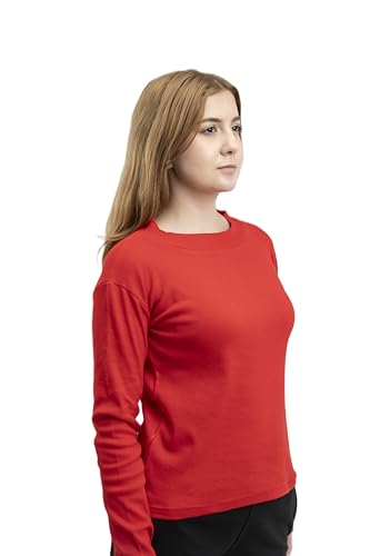 Generic - توب مضلع بأكمام طويلة للنساء – تيشرت أساسي بقصة ضيقة سليم فيت مرن وناعم، قماش خفيف الوزن ومزود بمسامات للتهوية، ملابس كاجوال للارتداء اليومي من موركس