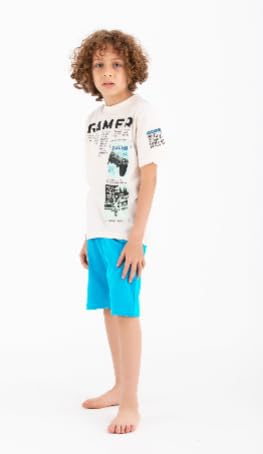 morinella - Boys Pajama Set Cream*Turquoise - Size 4 years old - 4406