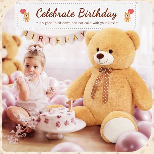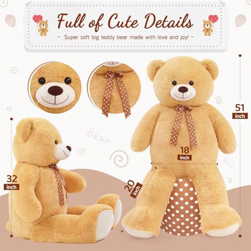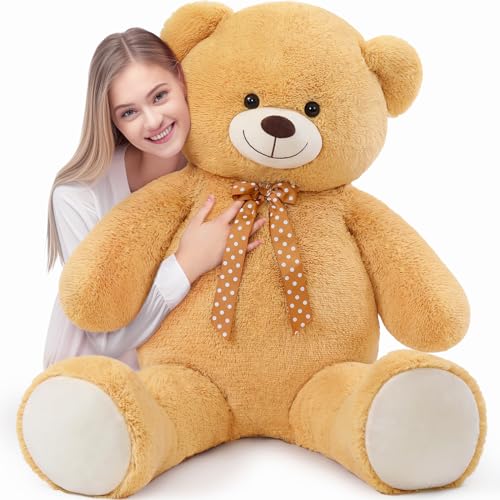 MorisMos - موريس موس دمية دب عملاقة محشوة على شكل كبير بطول 4 اقدام للبنات كبيرة للاطفال مع ربطة عنق - ديكورات حفلات استقبال المولود وهدية عيد الميلاد والكريسماس وعيد الحب
