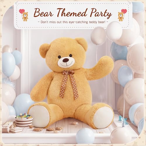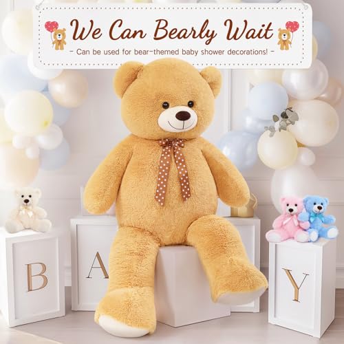 - يمكننا الانتظار: لا تفوت دمية الدب اللافتة للنظر لحفلات استقبال المولود بطابع الدب! دمية الدب العملاقة التي يبلغ طولها 4.5 أقدام تحتضن وتعانق للغاية بفضل موادها الممتازة. دمية الدب الكبيرة مصنوعة من فرو صناعي عالي الجودة وحشو لضمان أن كل محب للدب لديه لعبة دب قطيفة محبوبة؛