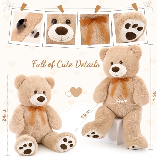 MorisMos - MorisMos Giant Teddy Bear Big Stuffed Animal for Girls 36 inch Brown Teddy Bear Large Plush Bear for Girlfriend, Baby Shower Decorations, Children Birthday Gifts, Bear Theme Party Favors