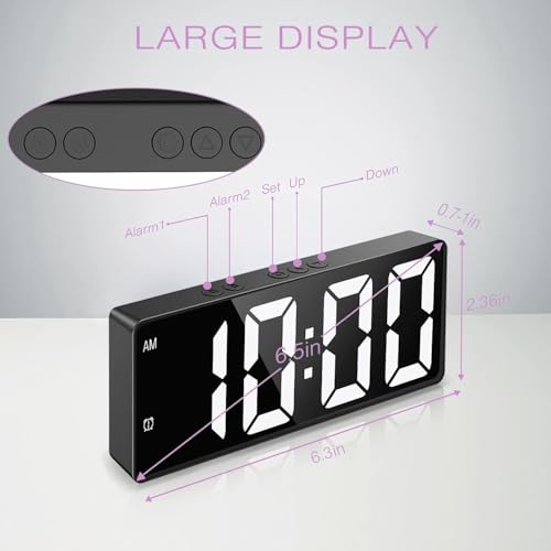 - The mirror alarm clock features a mirrored LED display that adds a stylish and beautiful touch to any space.