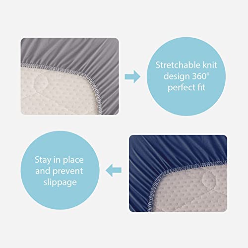 Moro Moro 3 - طقم ملايات سرير الأطفال من 2 قطعة من مورو مورو 3، ملاية سرير باستك مصنوعة من المايكروفايبر لسرير الأطفال القياسي ومراتب الأطفال الصغار، ملاية ناعمة (رمادي وازرق كحلي، 1.3 متر × 70 سم × 20 سم)
