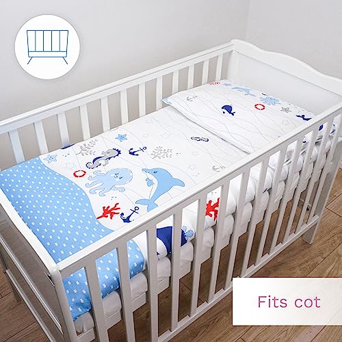 Moro Moro 3 - Moro Moro 3 2 Piece Baby Kids Bedding Set 120X90 Cm Duvet Cover & Pillowcase For Toddler Cot (Ocean Blue)