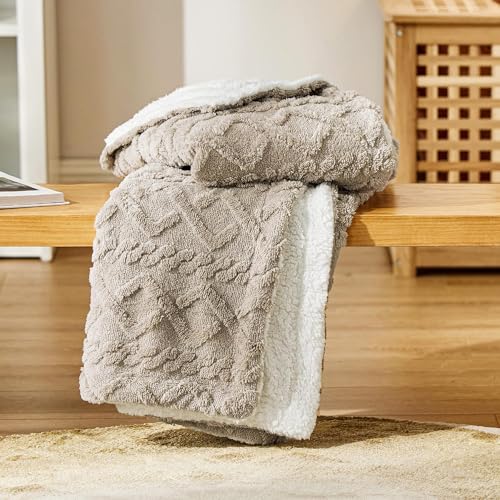 Moro Moro 3 - Moro Moro 3 Sherpa Fleece Blanket - Fuzzy Soft Warm Coral Jacquard Blanket for Bed and Sofa, Twin/Twin, Grey, 170 x 190 cm