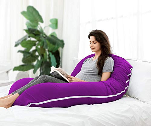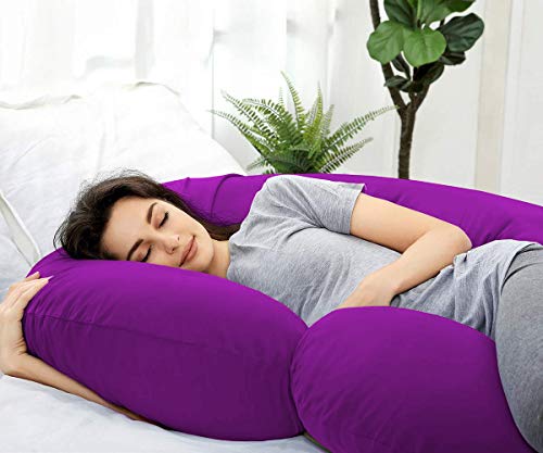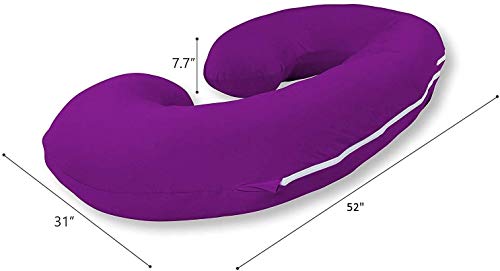 Moro Moro 3 - وسادة جسم/وسادة حمل فائقة النعومة ومريحة على شكل حرف C مع غطاء بسوستة من القطن بنسبة 100% من مورو - أرجواني