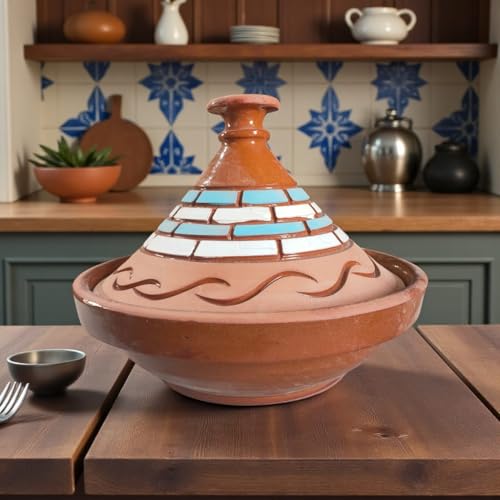 - حله بغطاء من الفخار بشكل المغربي، آمن للاستخدام في الميكروويف، مصنوع يدويًا في مصر