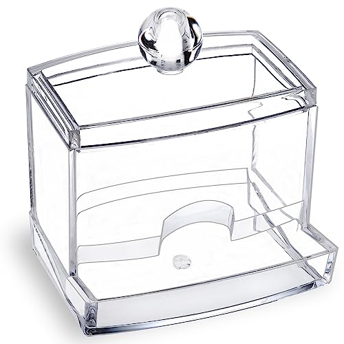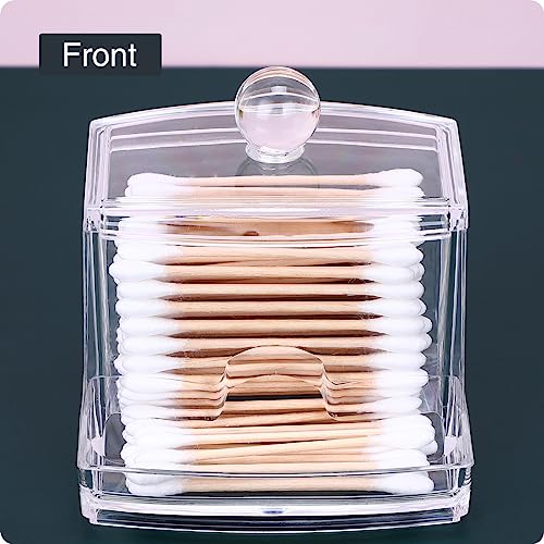 MOSIKER - 10oz Clear Acrylic Small Qtip Holder,Swab Dispenser Cotton Ball Jars Bathroom Organizer with Lid
