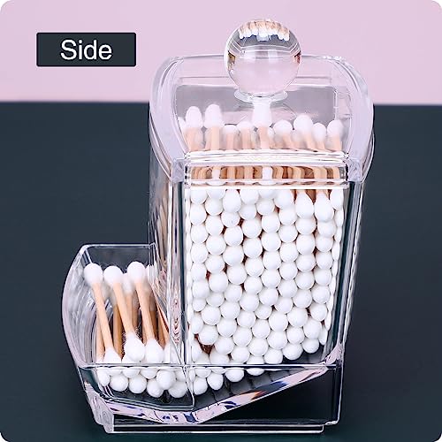 - UNIQUE DESIGN:The Qtip holder has a removable lid to keep dust out and contents dry.The bottom open part of the holder is easy for you to grab cotton swabs