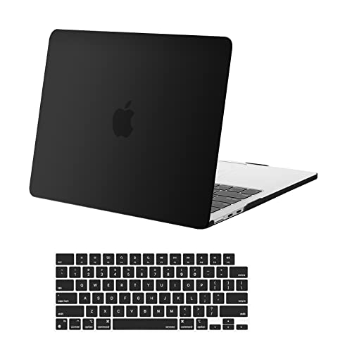 MOSISO - MOSISO Compatible with MacBook Air 13 inch Case M5 2026 M4 2025-2022 M3 M2 A3449 A3240 A3113 A2681, Plastic Hard Shell & Keyboard Cover Compatible with MacBook Air 13.6 inch Case, Black