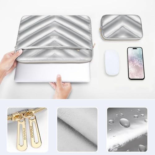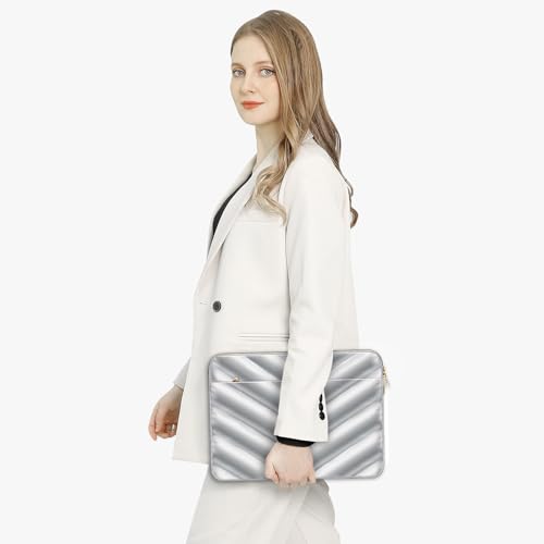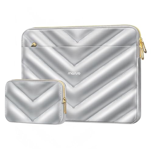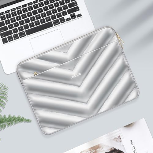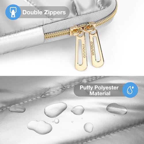 MOSISO - MOSISO Shiny Puffy Laptop Sleeve 13-13.3 inch, Carrying Case for Women Compatible with MacBook Air/Pro 13 inch, Compatible with MacBook Pro 14, Polyester Quilted Bag with Pocket&Small Case, Silver