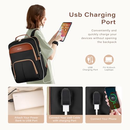MOSISO - MOSISO Women's Laptop Backpack, Laptop Bag with USB Charging Port and Front Pocket, Laptop Bag, Casual Travel Backpack for Office, University, Work, Business