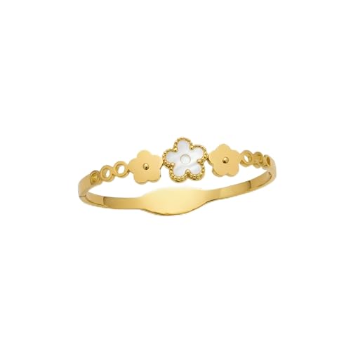 Generic - Mother of Pearl Cuff - Five-leaf clover motif in golden luster, non-corrosive and fade-resistant, crafted for elegance and lasting beauty in spring fashion.
