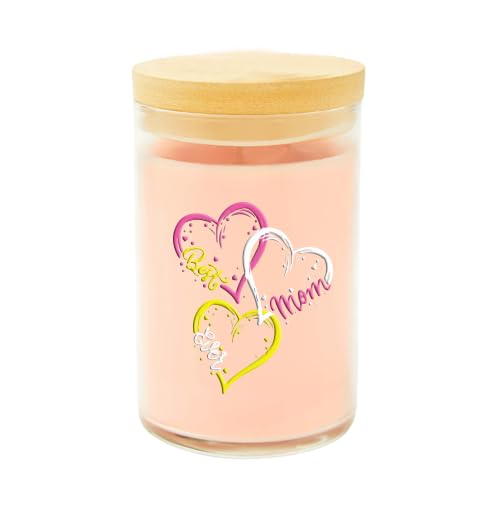 Generic - Mother's Day Scented Candle with Mum Design, Pink, Glass Jar with Wooden Lid, Heart Theme
