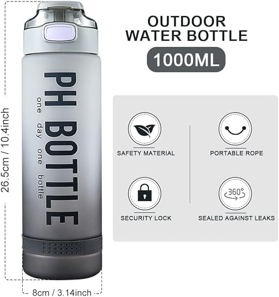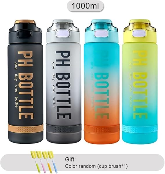Generic - زجاجة مياه رياضية تحفيزية مع ترقيم خالية من BPA ومضادة للكسر سعة 1 لتر، زجاجة مياه محمولة لركوب الدراجات والتخييم (متعددة الالوان)