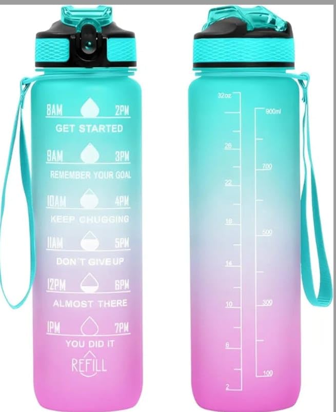 Generic - Motivational Water Bottle with Time Marker, 900ml, Turquoise and Pink Gradient with Carrying Strap and Secure Lid, Daily Drinking Scale