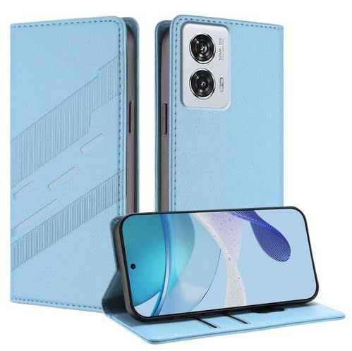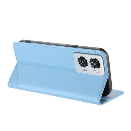 Generic - جراب moto edge 50 fusion حماية فيليب قابل للطي من الجلد الصناعي مقاوم للصدمات و مزود بحماية للكاميرا مع حامل بطاقات وكروت متوافق مع هاتف موتورولا ايدج 50 فيوجن (sky blue)