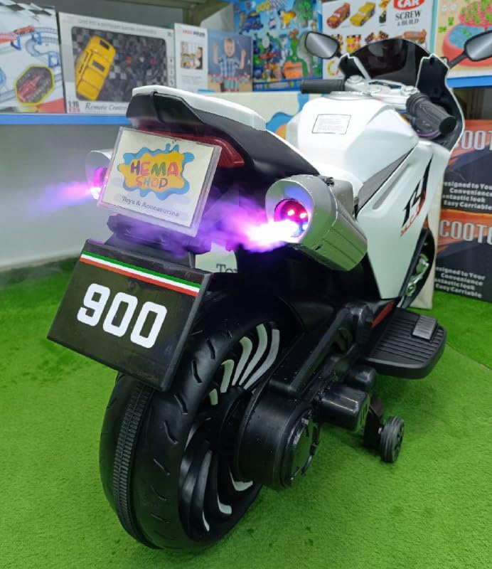 Generic - موتوسيكل 900L دخان - كهربائي ركوب للاطفال - ابيض - مناسب حتي 11 سنه