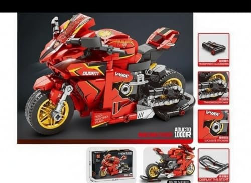 Generic - Motorcycle Building Kit, Red with Gold Details, 410 Pieces, Transforming Design, Exclusive Stickers, Clear Chain, Display Stand