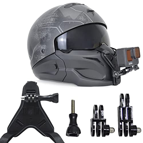- ¡ Vertical Direction Adjustable ¡½ - Strap mount bracket come with extension swivels arms, connected by screws to mount on the helmet chin, allows you to shot from different direction or angles; With universal mount adapter compatible with all GoPro models and other action cameras