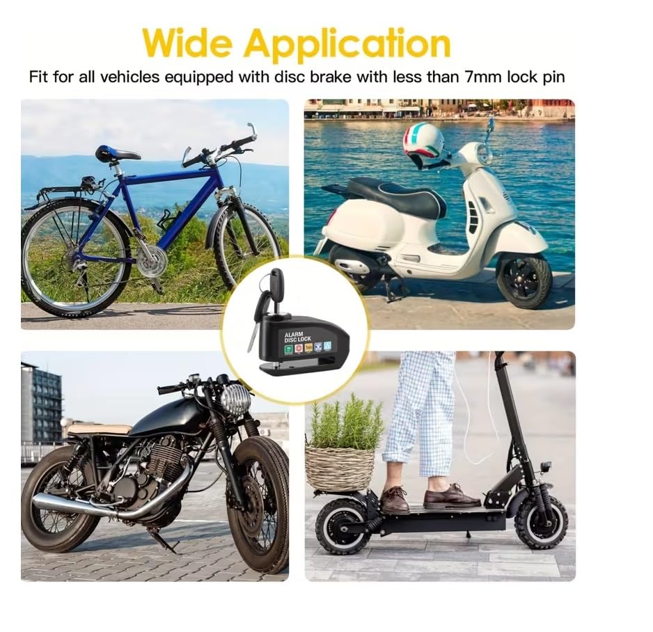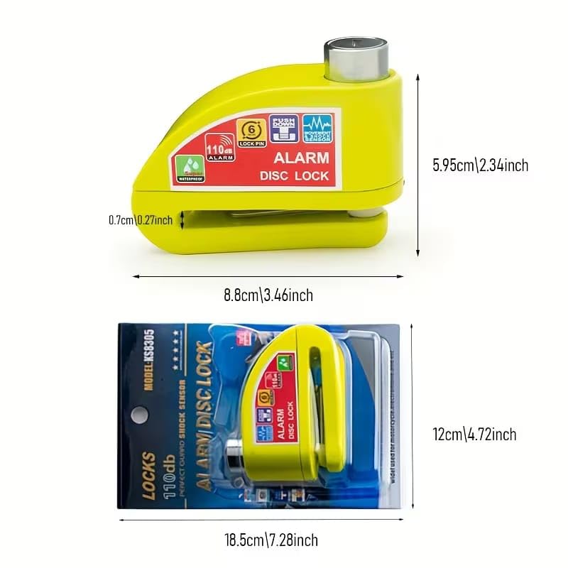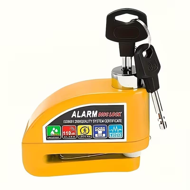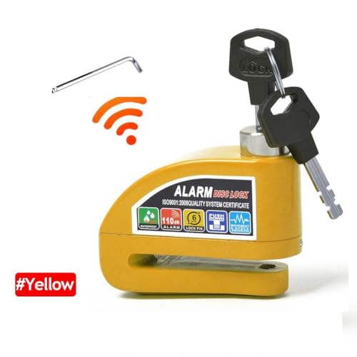 Generic - Motorcycle Lock Alarm Disc Anti-Theft 110dB Super Sound Alarm Cut-Off and Unlock Rustproof for Motorcycles, Electric Bikes, Scooters (Yellow)