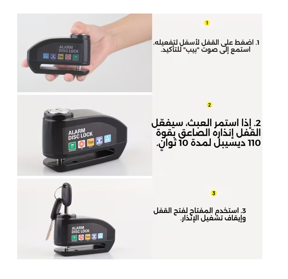 - MULTI-FUNCTION: Use as a safety anti-theft lock for motorcycles, motorcycles, bicycles, etc. Operation: Easy and simple. Press lock roller to lock the disc.