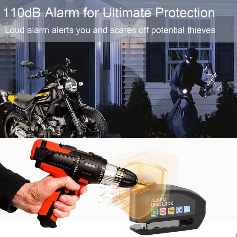 - 110 dB Anti-Theft Anti-Theft Disk Alarm Super Sound Cut-Off Resistant, Rust Resistant, Suitable for Motorcycles Electric Scooter