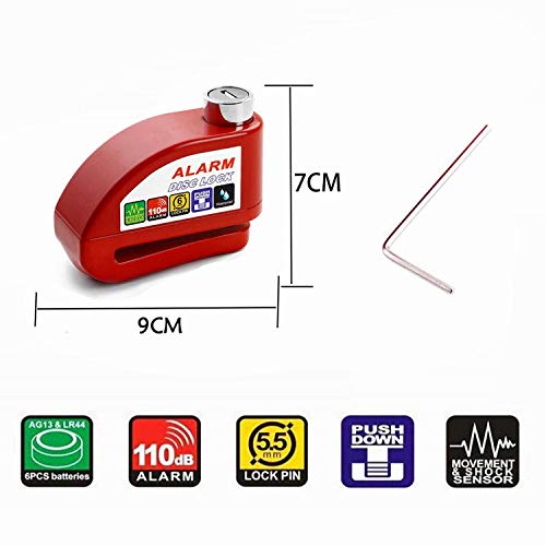 Other - Motorcycle Lock Disc Lock Alarm Anti-theft Waterproof 110db Alarm Sound Disc Brake Lock for Motorcycles Bike Red