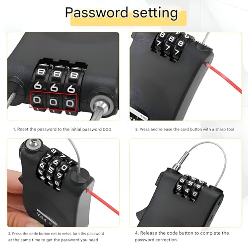 - Its retractable cable design makes it convenient for users to easily extend or retract the lock wire as needed, improving portability and ease of use during travel or daily activities.