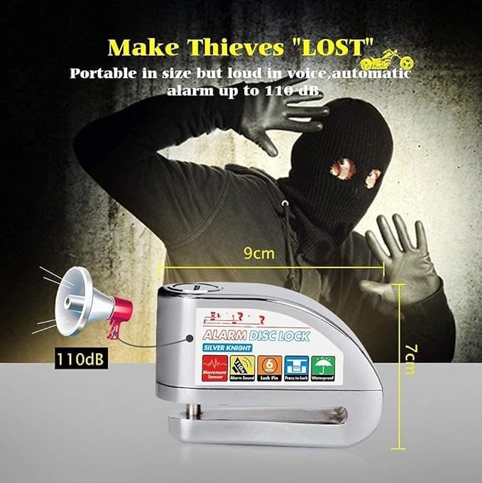 - PREVENT THEFF: Stop potential thieves from stealing the motocycle with the moto-brake wheel lock The bike lock with loud alarm if someone tries to move the bike without opening it first. Park your bike with peace of mind.