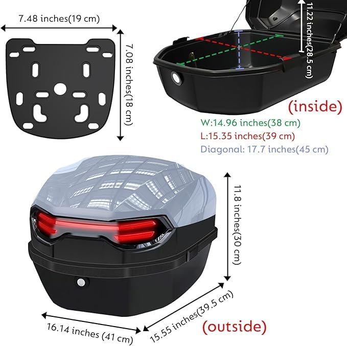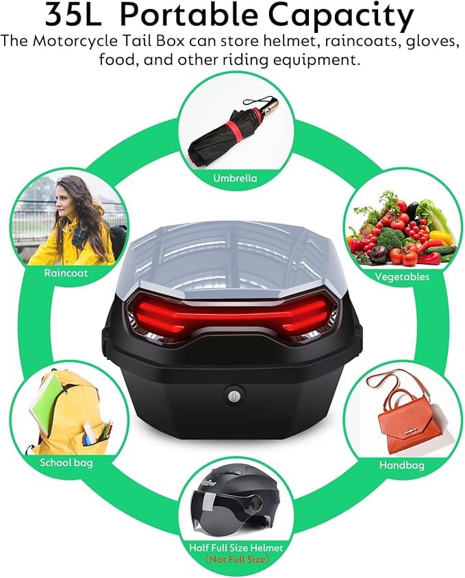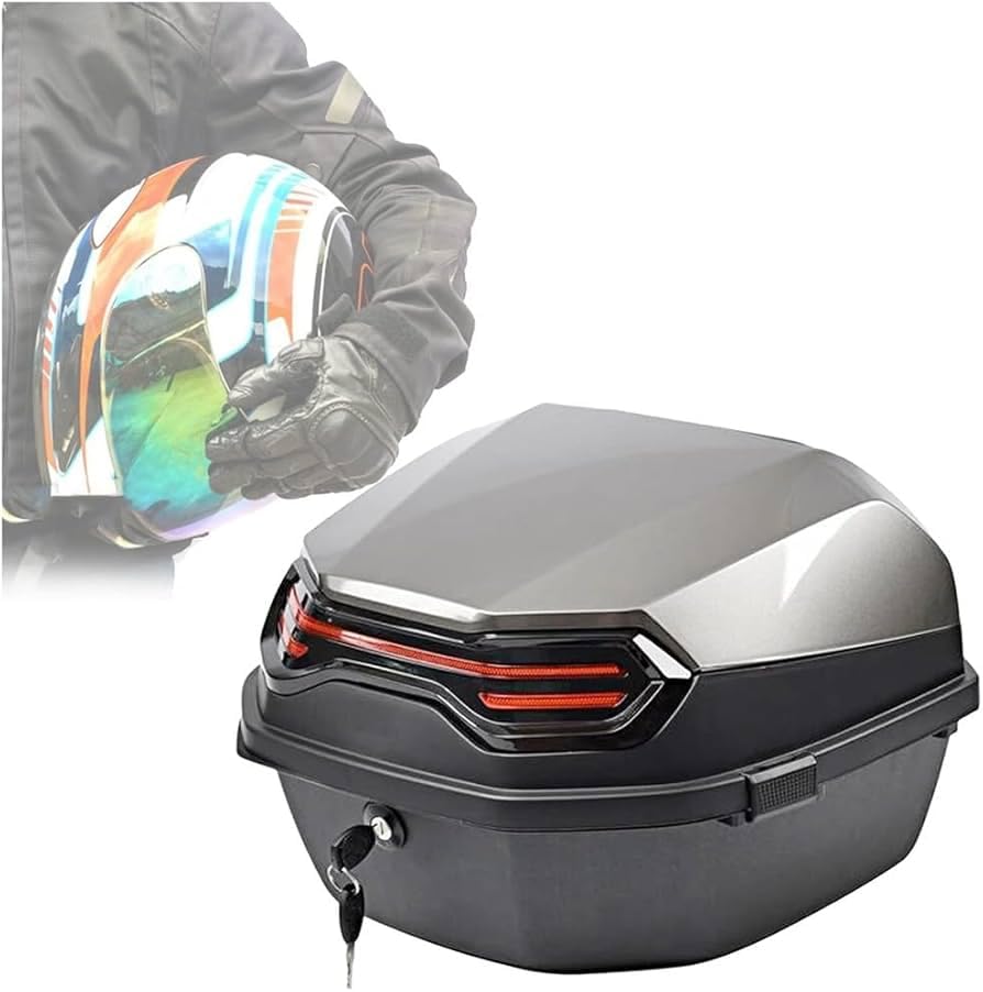 Generic - Motorcycle Rear Motorcycle Bag Bag Box Compatible with Most Motorcycles - Large Size 30L with 2 Keys and Fasteners - Large Size (Gray)