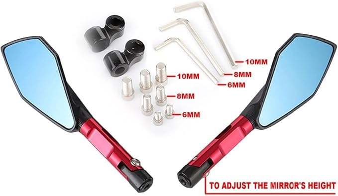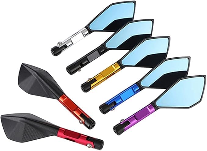 Generic - Motorcycle Side Mirrors Standard with 8mm & 10mm Bolts - Anti Glare Hawk Eye Rearview Mirrors for GY6 Bike, Scooter, Motocycle, Street Bike, Cruiser, Quad Bike (Blue)