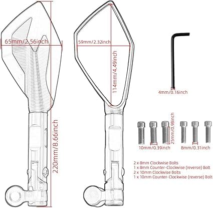 - No technician needed - can be installed by hand in minutes Fits most motorcycle based on 8mm or 10mm screws. Adjust the angle as needed without additional tools.