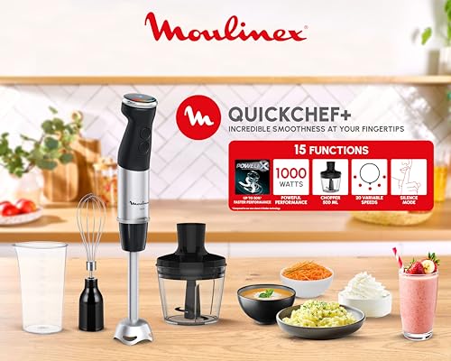 Moulinex - Moulinex Quickchef+, Hand Blender, 3IN1,1000W, Chopper 500ML, Beaker 800ML, 20 Speeds, Stainless Steel Foot - DD673810