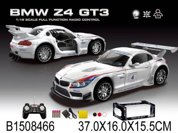 Mounir Toys - 866-1812B 1:18 Scale BMW Z4 GT3 Remote Control Racing Car Toy, White
