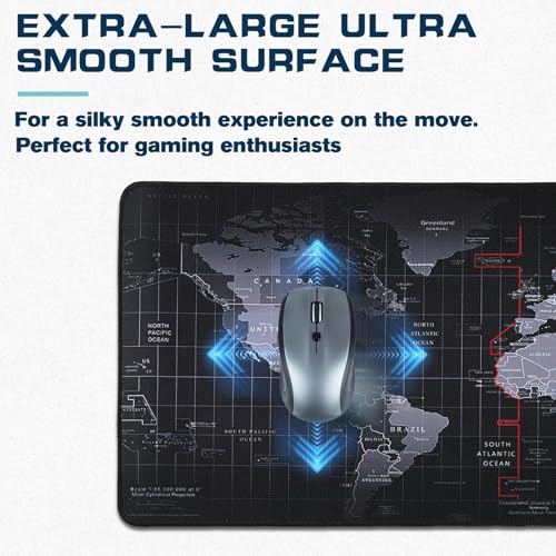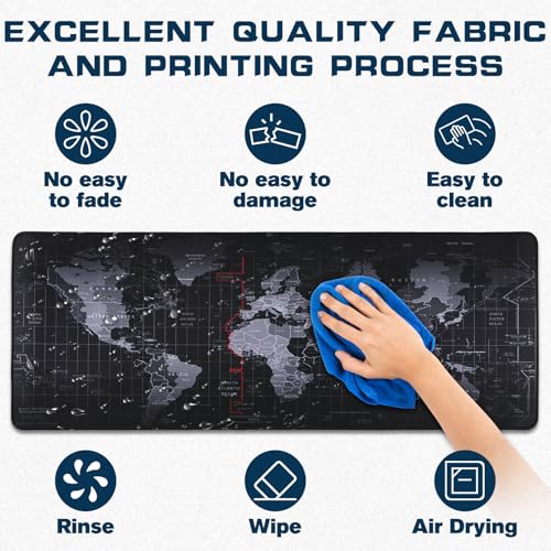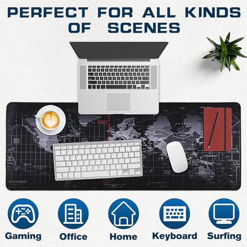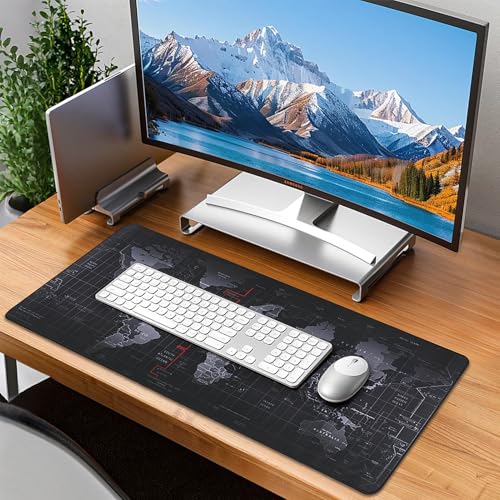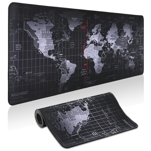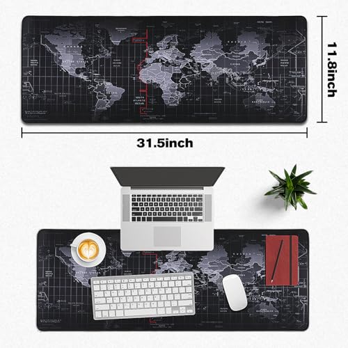 Yuhijoy - Mouse Pad Gaming - Desk Mat for Keyboard and Mouse - Black World Map Large Mouse Pads for Desk, Gaming Mousepad with Non-Slip Base, Desk Pad (31.5" X 11.8") for Gaming, Office and Home