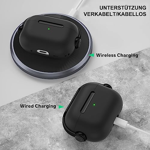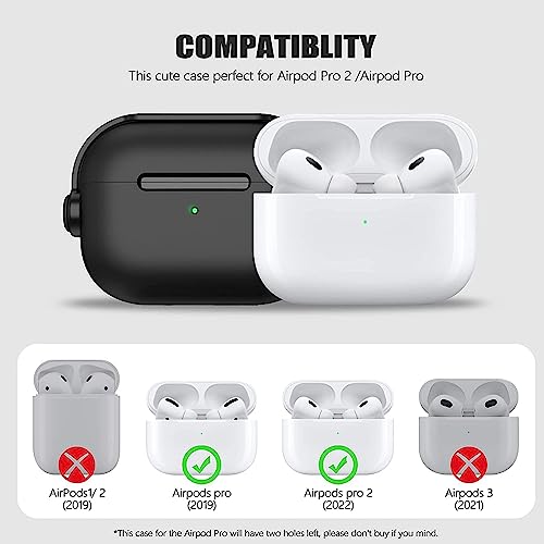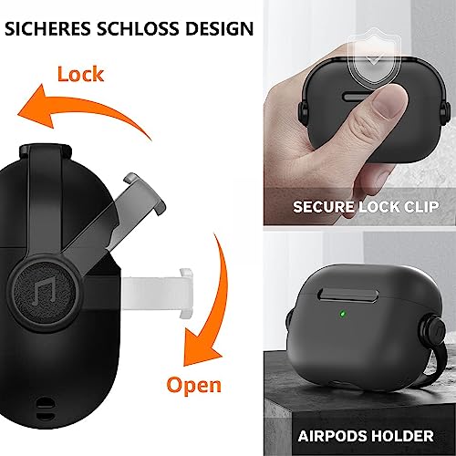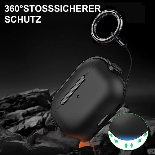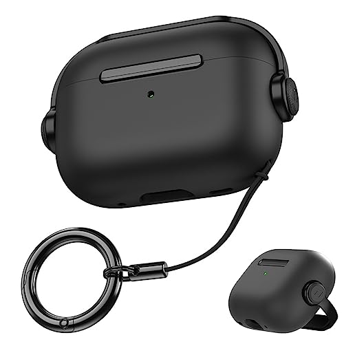 Mouyou AirPods Pro Case 2021 2019, Case for Apple AirPods Pro 1 Gen with Secure Lock & Keychain, Music Headset Earphone Protective Case, Shockproof LED Visible Wireless Charging Cover for Pro Black