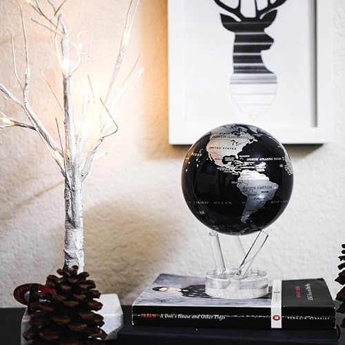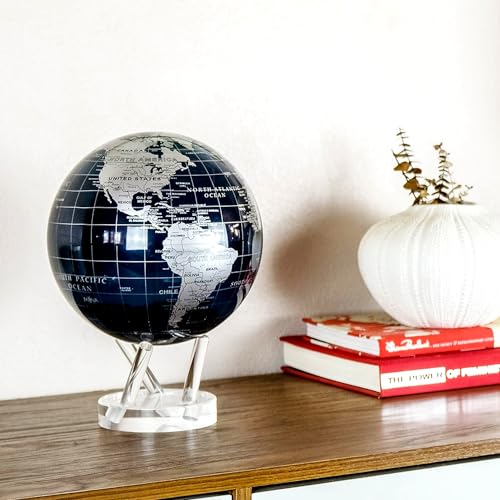 MOVA - MOVA Globe Black and Silver 6" with Base, Solar Powered Rotating Globe No Need of Battery or Chord, Unique Gift and Decoration