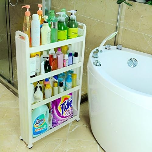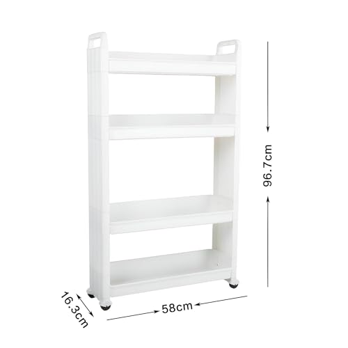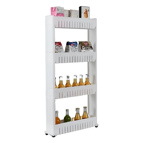 - ❀ Slim sliding storage tower: the ideal way to use the narrow spaces in your home for storage. At home in your kitchen, workshop or between washing machine and dryer.