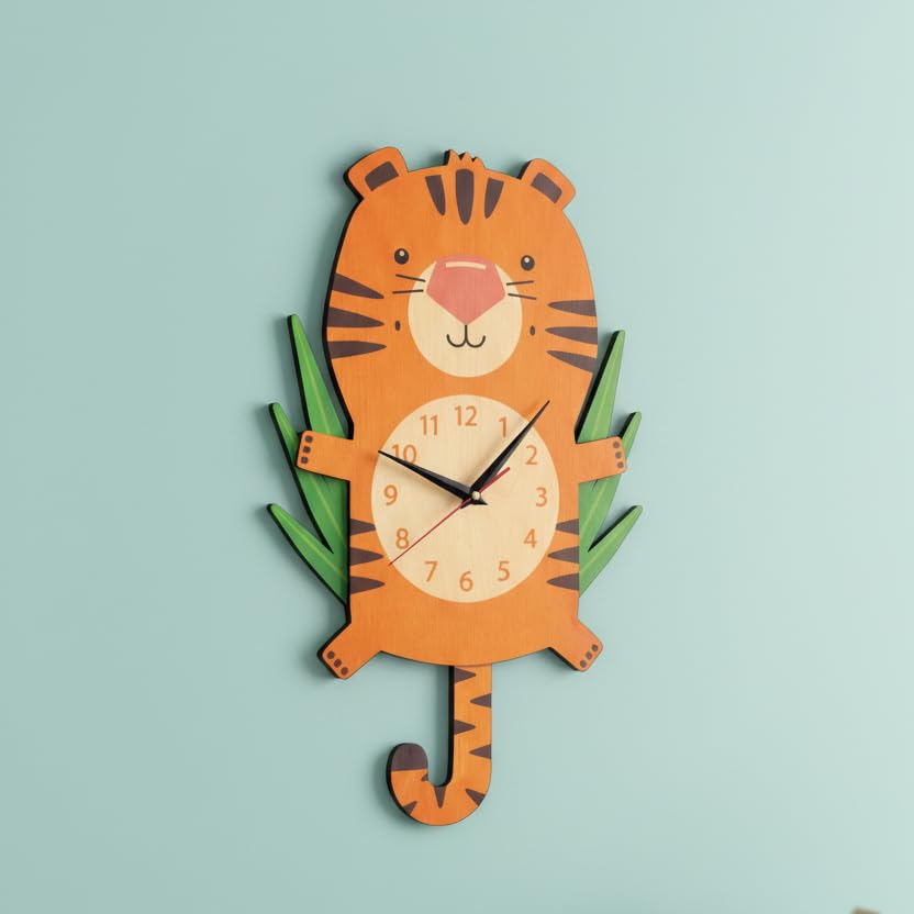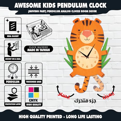 Generic - Moving Pendulum Wall Clock Modern Design Tiger with Moving Feet, Bright Colors and High Quality, Quiet Silent Movement, Easy to Hang, Add Attractive Decorative Touch to All Taste