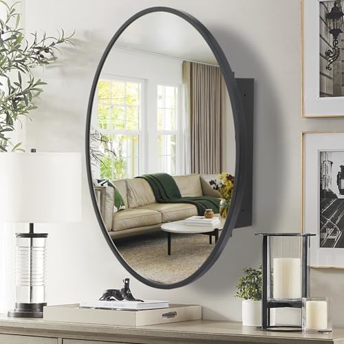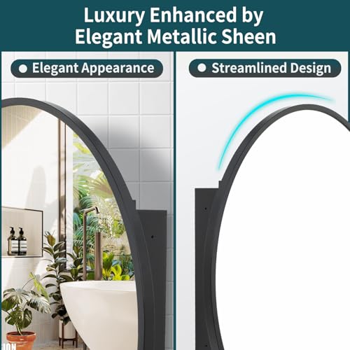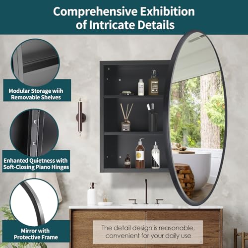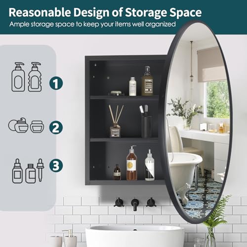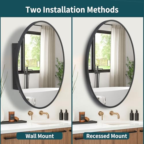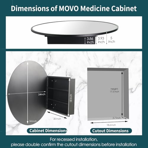 Movo - دولاب أدوية بيضاوي مجوف بمراية وإطار أسود، دولا حمام مثبت على الحائط بمساحة تخزين و2 رف قابلين للإزالة من موفو، مقاس 60.96 سم × 86.36 سم