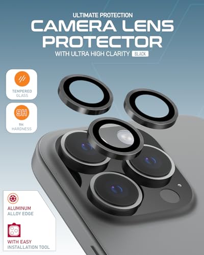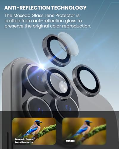 Moxedo - واقي عدسة الكاميرا من خليط معدني من الألومنيوم مع أداة تركيب سهلة من موكسيدو متوافق مع آيفون 16 برو 6.3 بوصة/آيفون 16 برو ماكس 6.9 بوصة (أسود)